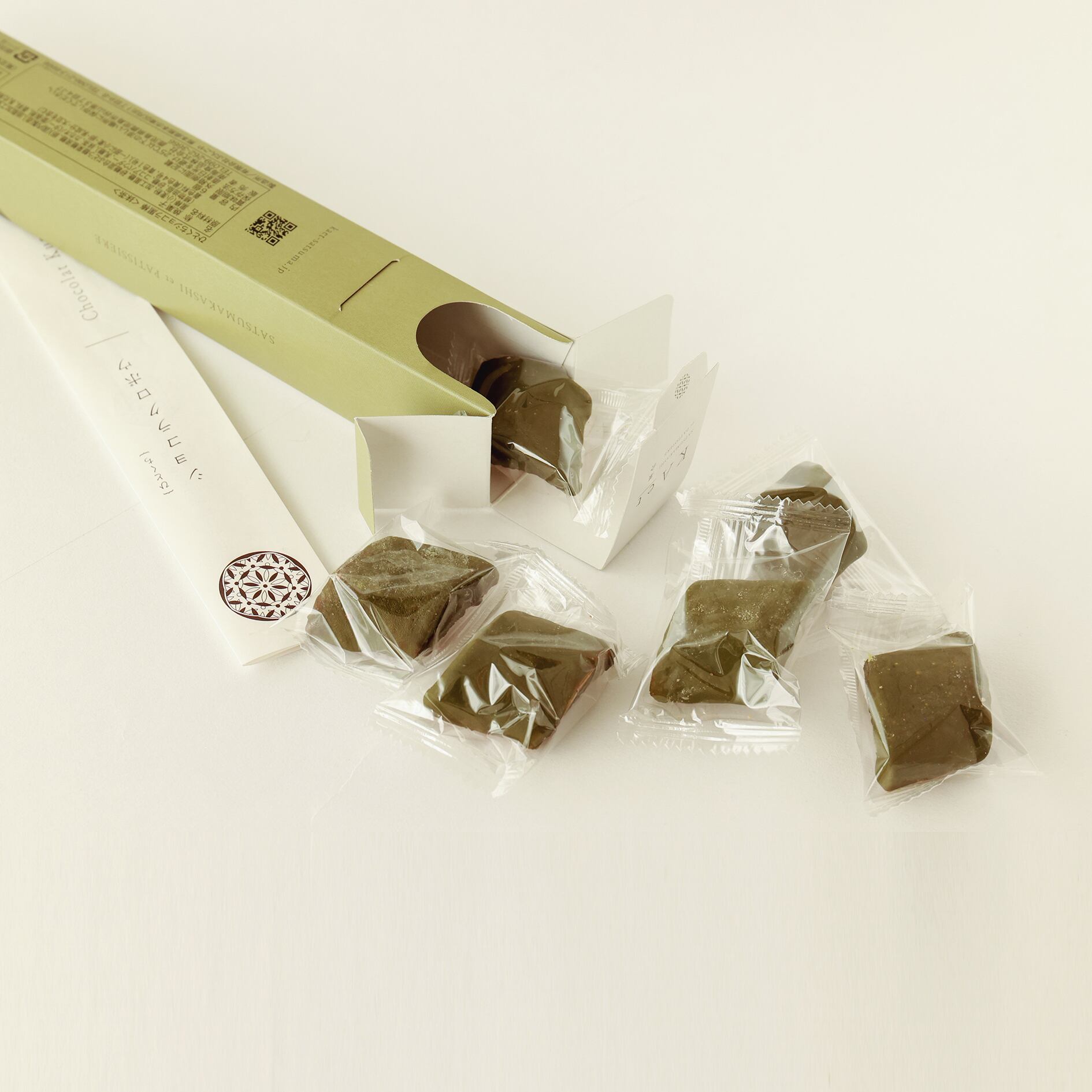 鹿児島知覧茶の抹茶を贅沢に使い、黒棒の味わいに上品な苦味を加え、バランス良く仕上げました。